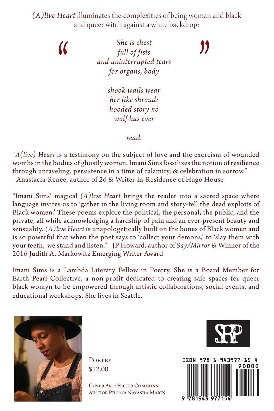 Imani Sims' magical (A)Live Heart brings the reader into a sacred space where language invites us to "gather in the living room and story-tell the dead exploits of Black women." These poems explore the political, the personal, the public, and the private, all while acknowledging a hardship of pain and an ever-present beauty and sensuality. (A)Live Heart is unapologetically built on the bones of Black women and is so powerful that when the poet says to "collect your demons," to "slay them with your teeth," we stand and listen. - JP Howard, author of Say/Mirror & Winner of the 2016 Judith A. Markowitz Emerging Writer Award