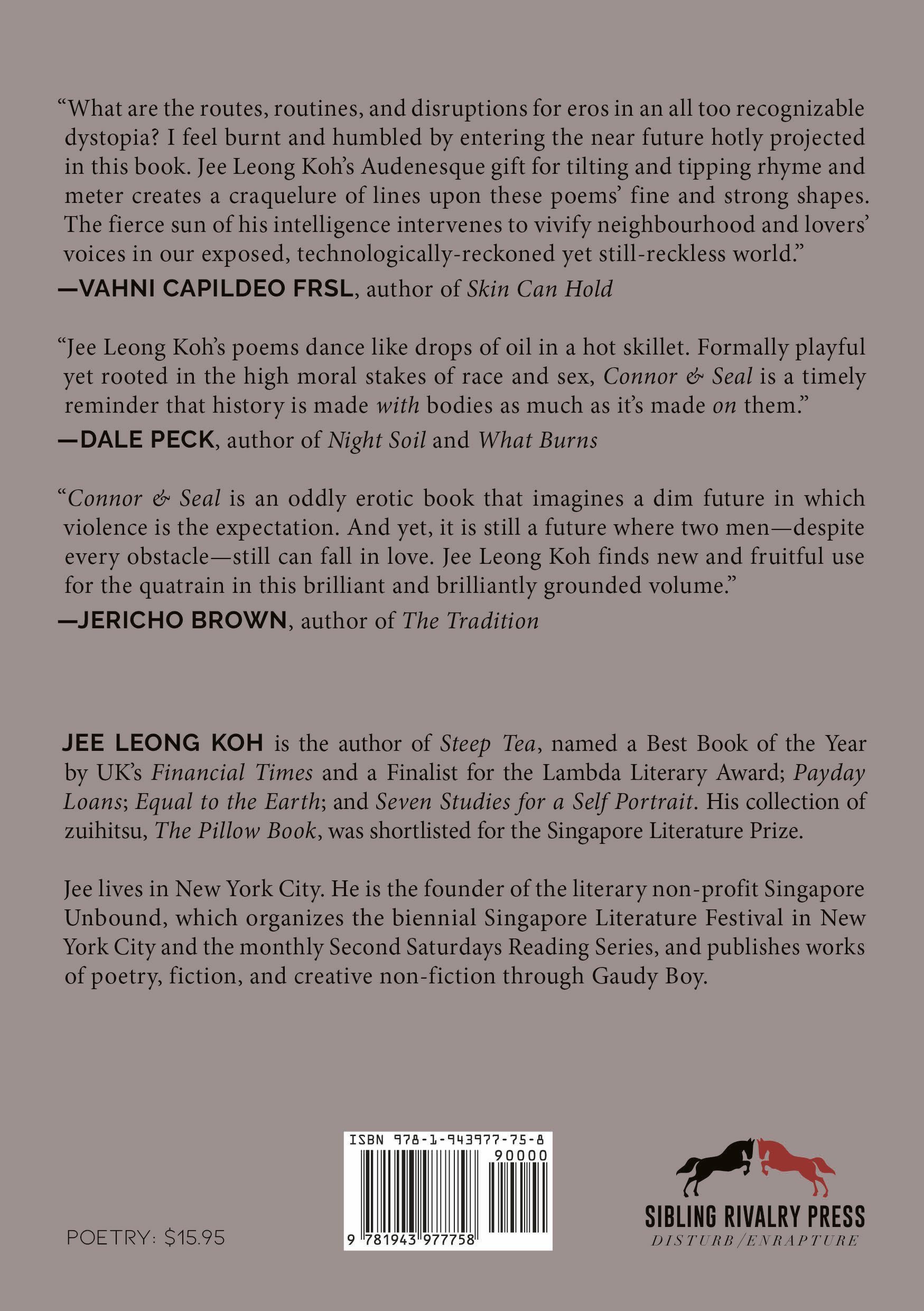“Jee Leong Koh’s poems dance like drops of oil in a hot skillet. Formally playful yet rooted in the high moral stakes of race and sex, Connor & Seal is a timely reminder that history is made with bodies as much as it’s made on them.”