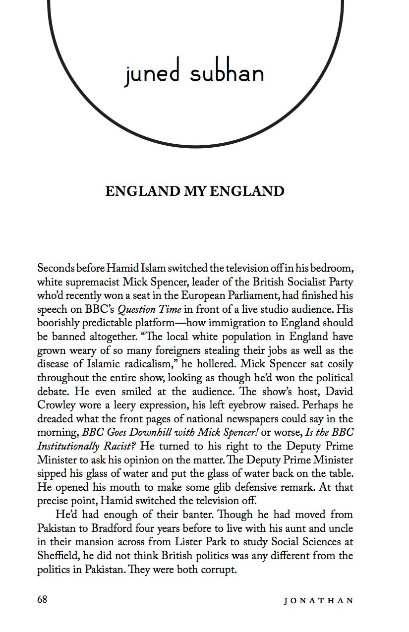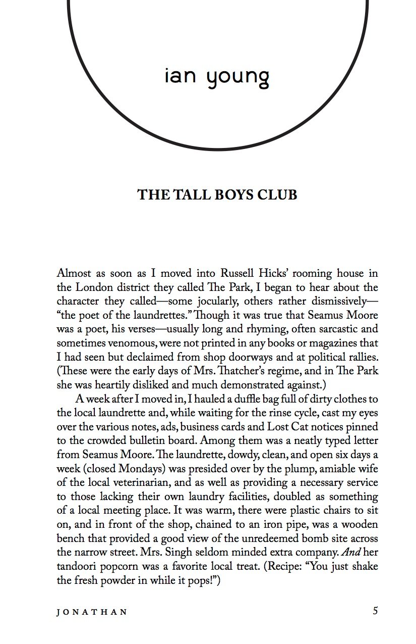 Jonathan, edited by Raymond Luczak, features fiction by established and emerging gay authors. Included in the sixth installment of Jonathan: Adam Bartley, Ian Young, Mike Kaspar, Jonathan Harper, Mark Ward, B.V. Marshall, Philip Dean Walker, Thomas Malcolm Ross, Andy Sinclair, and Juned Subhan.