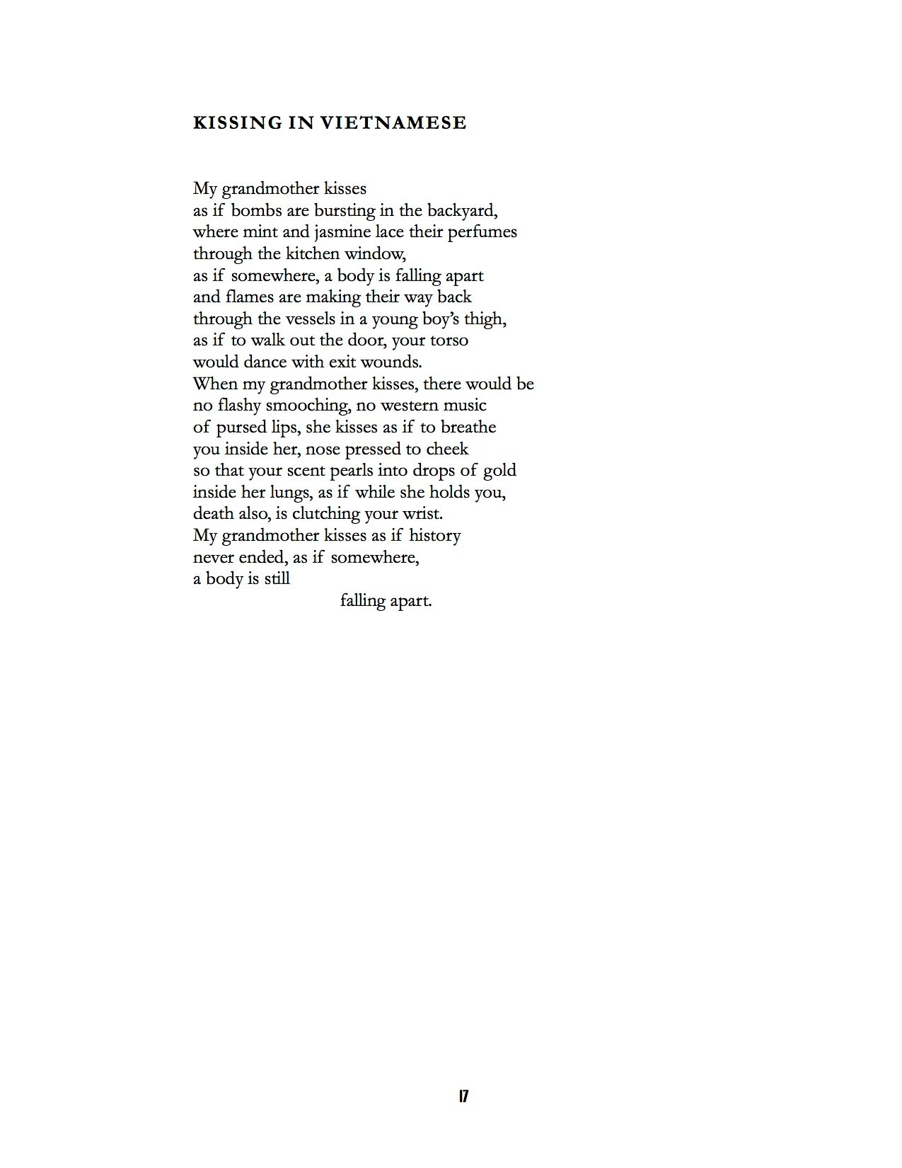 Included on the American Library Association's OVER THE RAINBOW list of recommended LGBT reading for 2012 -- "'I was born because someone was starving…' ends one of Ocean Vuong’s poems, and in that poem, as in every other of his poems, Ocean manages to imbue the desperation of his being alive, with a savage beauty. It is not just that Ocean can render pain as a kind of loveliness, but that his poetic line will not let you forget the hurt or the garish brilliance of your triumph; will not let you look away. These poems shatter us detail by detail because Ocean leaves nothing unturned, because every lived thing in his poems demands to be fed by you; to nourish you in turn. You will not leave these poems dissatisfied. They will fill you utterly." - Roger Bonair-Agard, two time National Slam Champion, author of Tarnish and Masquerade