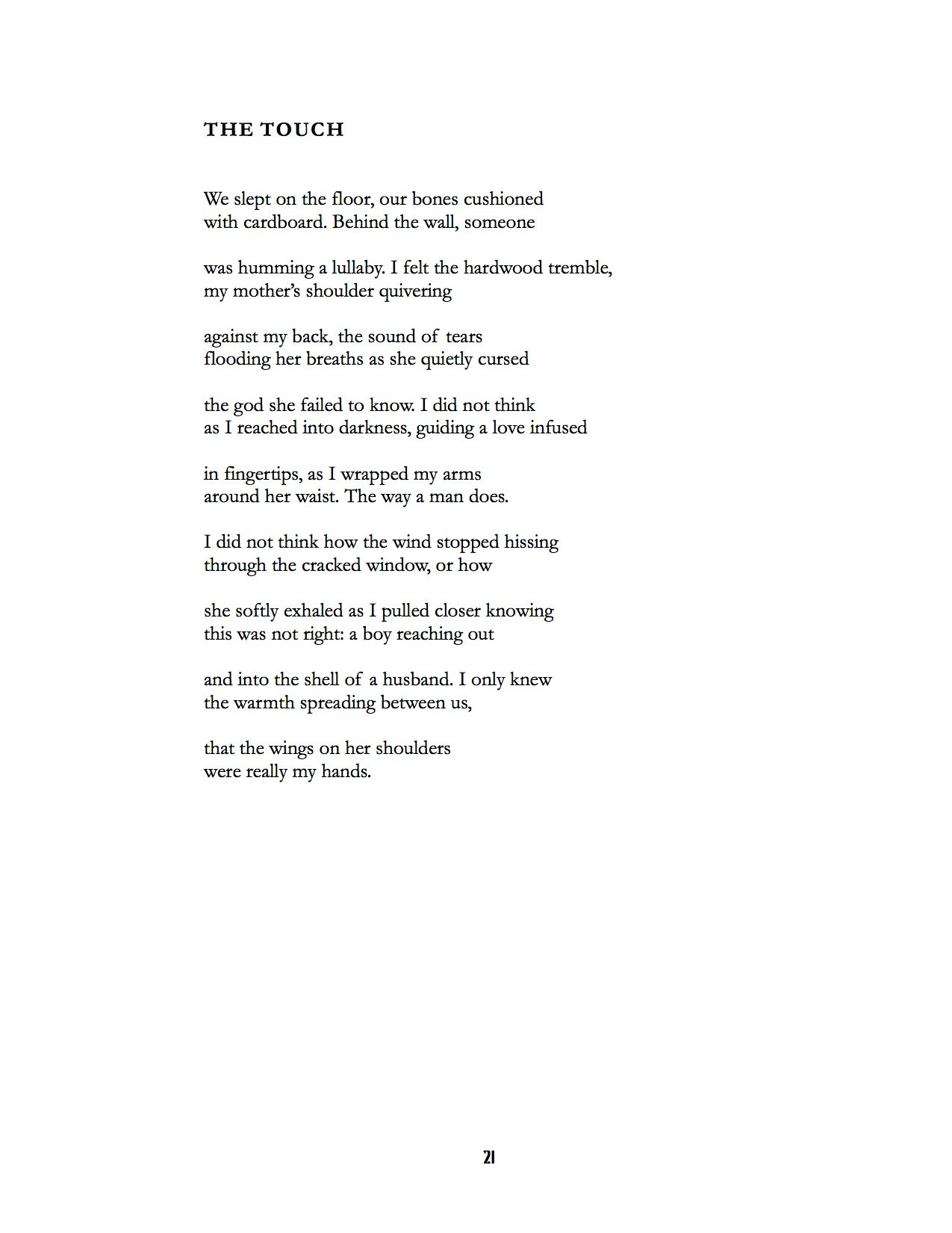 Burnings – A chapbook of poetry by Ocean Vuong (Cover art by Ashley Blazawski). The poems of Burnings explore refugee culture, be the speaker a literal refugee from a torn homeland, or a refugee from his own skin, burning with the heat of awakening eroticism. In this world, we’re all refugees from something…