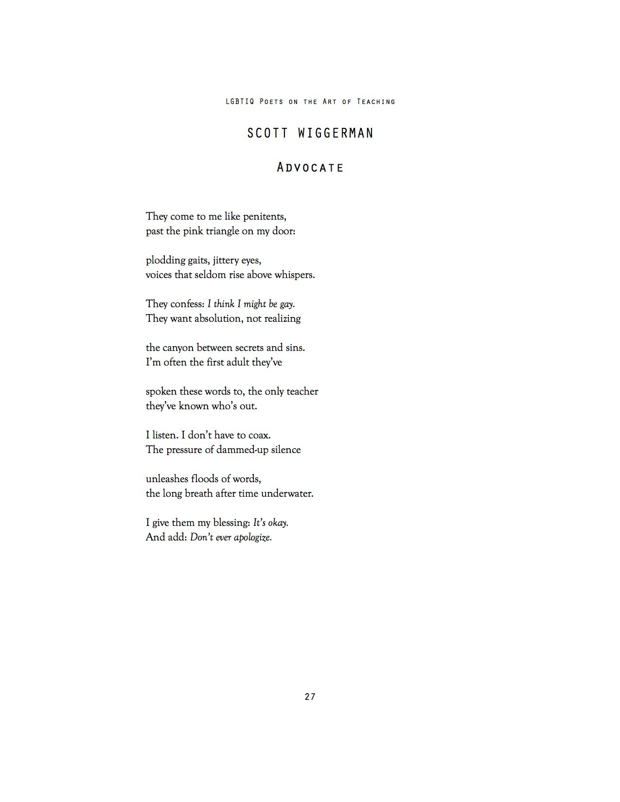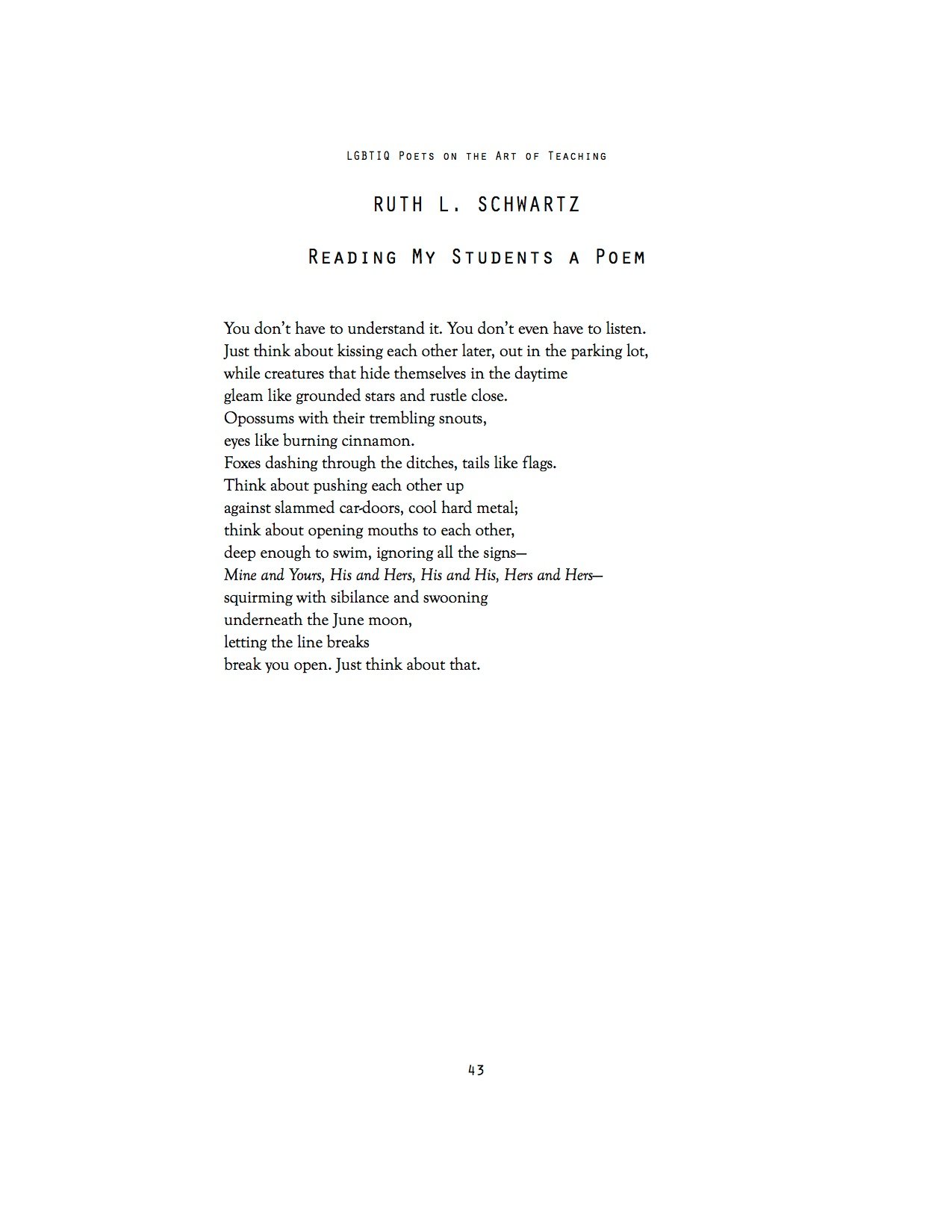 LGBTIQ POETS ON THE ART OF TEACHING