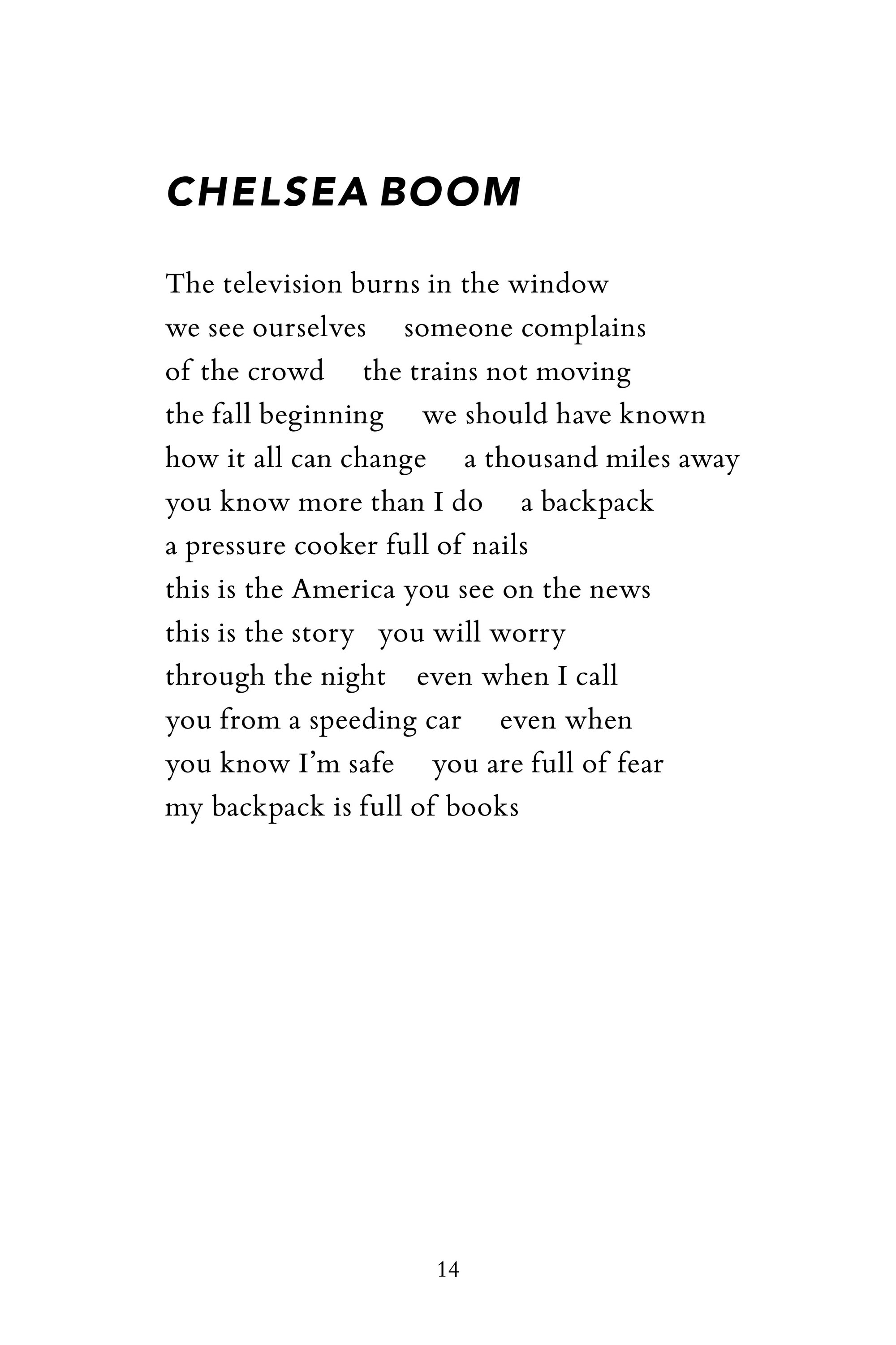 In the fall of 2016, Bryan Borland embarked on a book tour that took him across the United States. Set against the backdrop of a divisive presidential campaign with an unanticipated victor, an explosion in New York, a historic World Series, the largest poetry event in North America, and a maturing relationship at home, Borland navigates the ways we become tourists in our own lives.